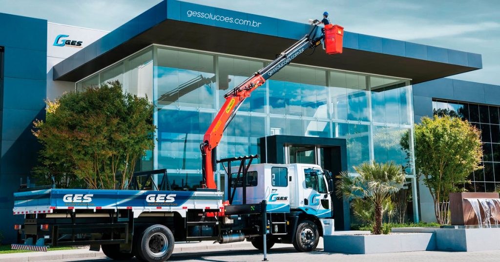 Utilizamos caminhão com cesto aéreo para realizar atividades em alturas com segurança